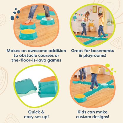 - Combinaciones infinitas: construye según tus preferencias con 8 secciones de vigas y 5 piedras sensoriales escalonadas.
