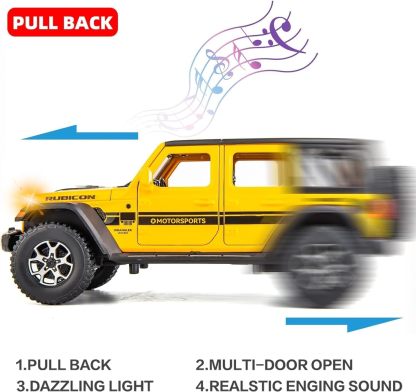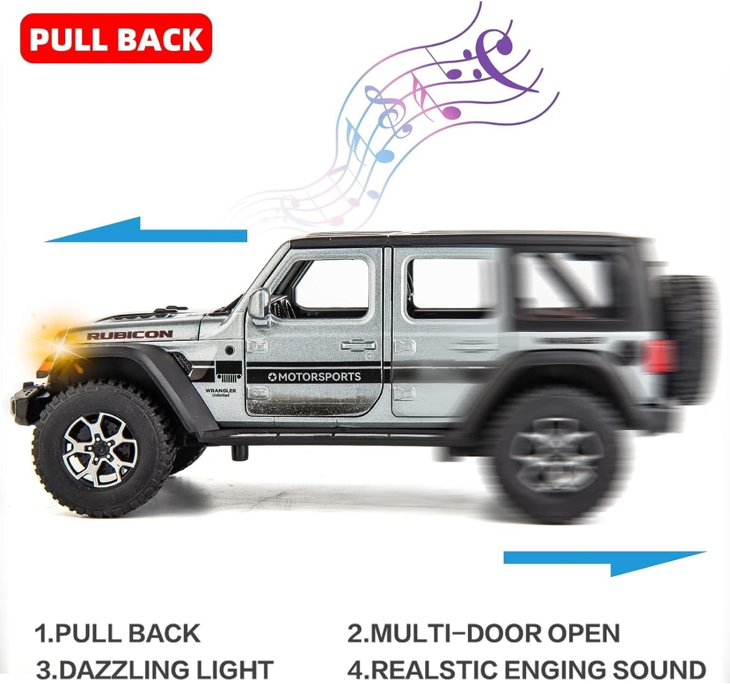 ¿Cuáles son las características de nuestro modelo de coche1. Presione la rueda delantera para activar el sonido del motor y los faros delanteros y traseros2. El diseño de doble puerta del vagón permite la apertura de las dos puertas en ambos lados3. La carcasa del cuerpo está hecha de material de aleación, que no es fácil de romper4. Coloque el automóvil en el suelo plano, presione y sostenga el cuerpo y tire hacia atrás, el automóvil avanzará (con la función de tirar hacia atrás) Descripción: 1. Abra la caja y retire el aislante de la batería de la parte inferior del automóvil2. Presione la rueda delantera para activar el efecto de iluminación de sonido3. Presiona el botón en la parte inferior de la rueda delantera para abrir el capóPor qué elegir comprar este modelo Wrangler1. Este modelo con una proporción de 1/22 es muy similar al automóvil real en apariencia y puede brindar la información correcta sobre el conocimiento del automóvil a los niños2. Brindamos 100% de satisfacción con el servicio posventa, devolvemos los productos dentro de los 30 días posteriores a la recepción de los productos y 1 año de servicio posventa.