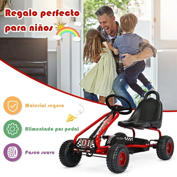 Ideal para niños 3-6 años, Aguanta hasta 30 kg, Ideal para diferentes tipos de terrenos con las 4 ruedas antideslizantes, Asiento regulable en 2 posiciones según necesidad, Volante y freno de mano que parecen verdaderos, Evita cargar la batería y conectar los cables, Pedales duraderos que aumentan la coordinación, la fuerza y la resistencia, PP de alta calidad y estructura en hierro duradero y estable, Garantiza la seguridad de los niños con el asiento con el cinturón de seguridad, Se puede ir adelante y atrás con los pedales y el volante