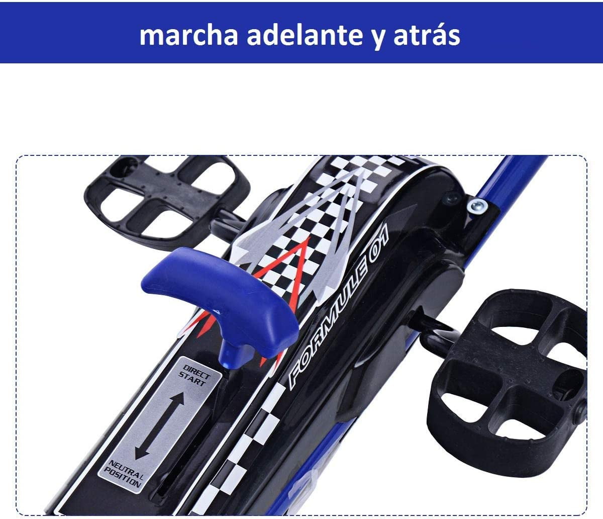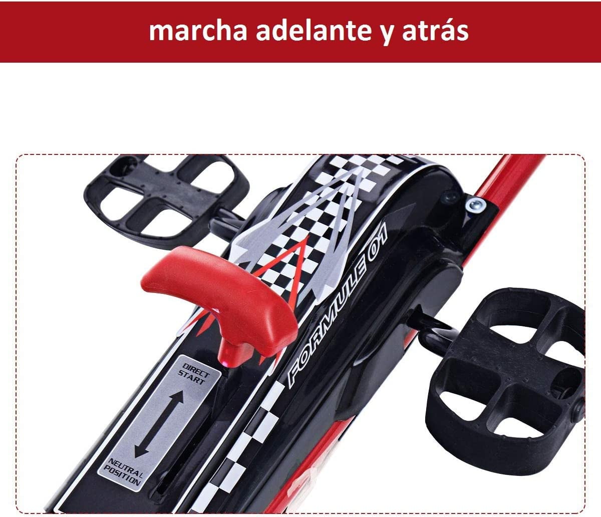 Feature Rueda de goma, incluso en terrenos irregulares extremadamente estables. (El interior es de plástico) Frenado rápido posible con los pedales. Detenga el pedal del coche de forma segura en cualquier momento con el freno de mano. Asiento ajustable perfecto para niños en crecimiento Conducir hacia adelante y hacia atrás.