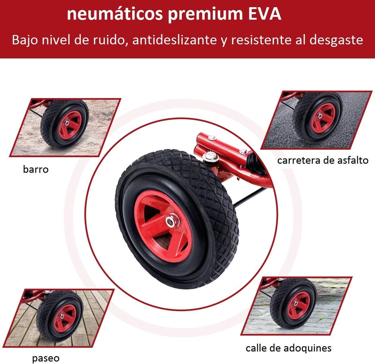 Alta calidad: Gracias a las ruedas de goma de alta calidad, incluso en terrenos irregulares extremadamente estables, Go kart en un diseño poderosamente fresco.