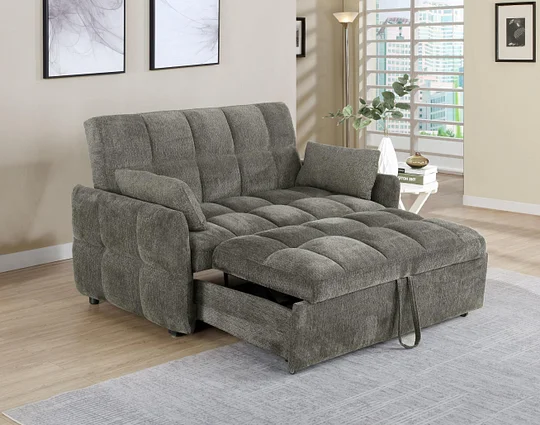 Get the best of both worlds for snoozing and lounging with this sleeper sofa. All over-tufting enhances the comfort of the chenille fabric. Slim arms and a rounded rectangular backrest give it a modern flair as a stylish sofa. Fold down the backrest to easily create sleeping space for guests. A pull-out sleeper mechanism makes this an easy-to-use upgrade for a living room or guest bedroom.