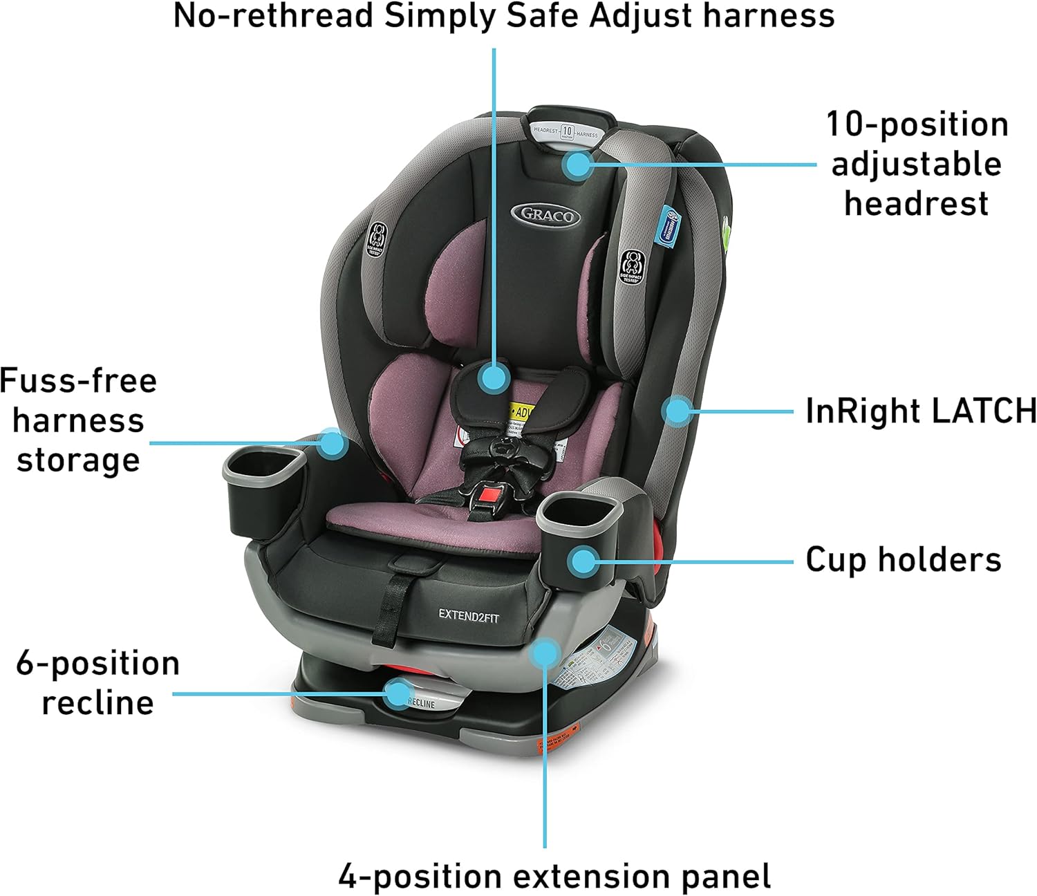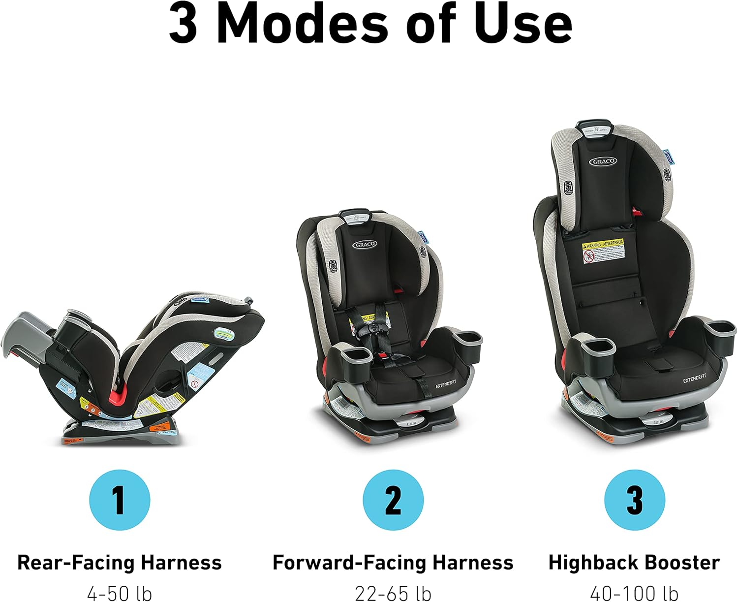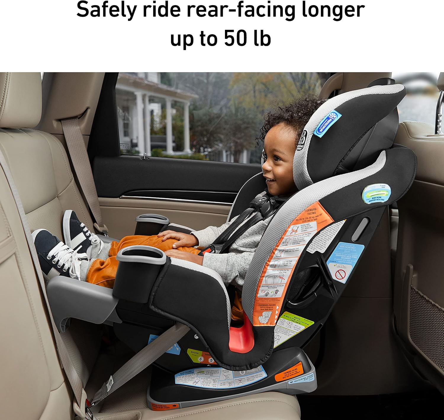 El panel de extensión de 4 posiciones se ajusta para proporcionar 12,7 cm de espacio adicional para las piernas, lo que permite a tu hijo montar de forma segura hacia atrás más tiempo.