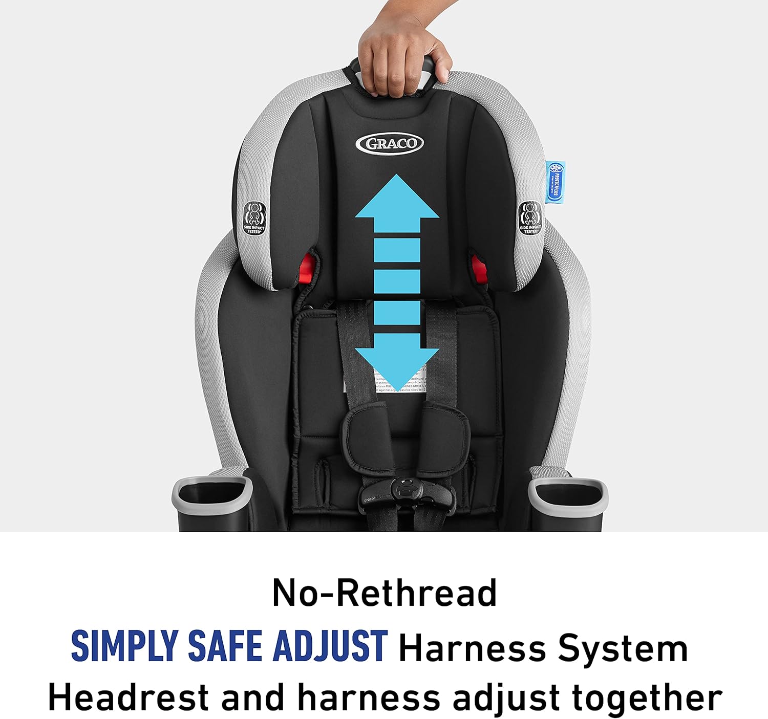 Ajusta la altura de tu arnés y reposacabezas en un solo movimiento con el sistema de arnés de ajuste seguro sin rerosca para asegurar que tu hijo esté siempre correctamente asegurado.