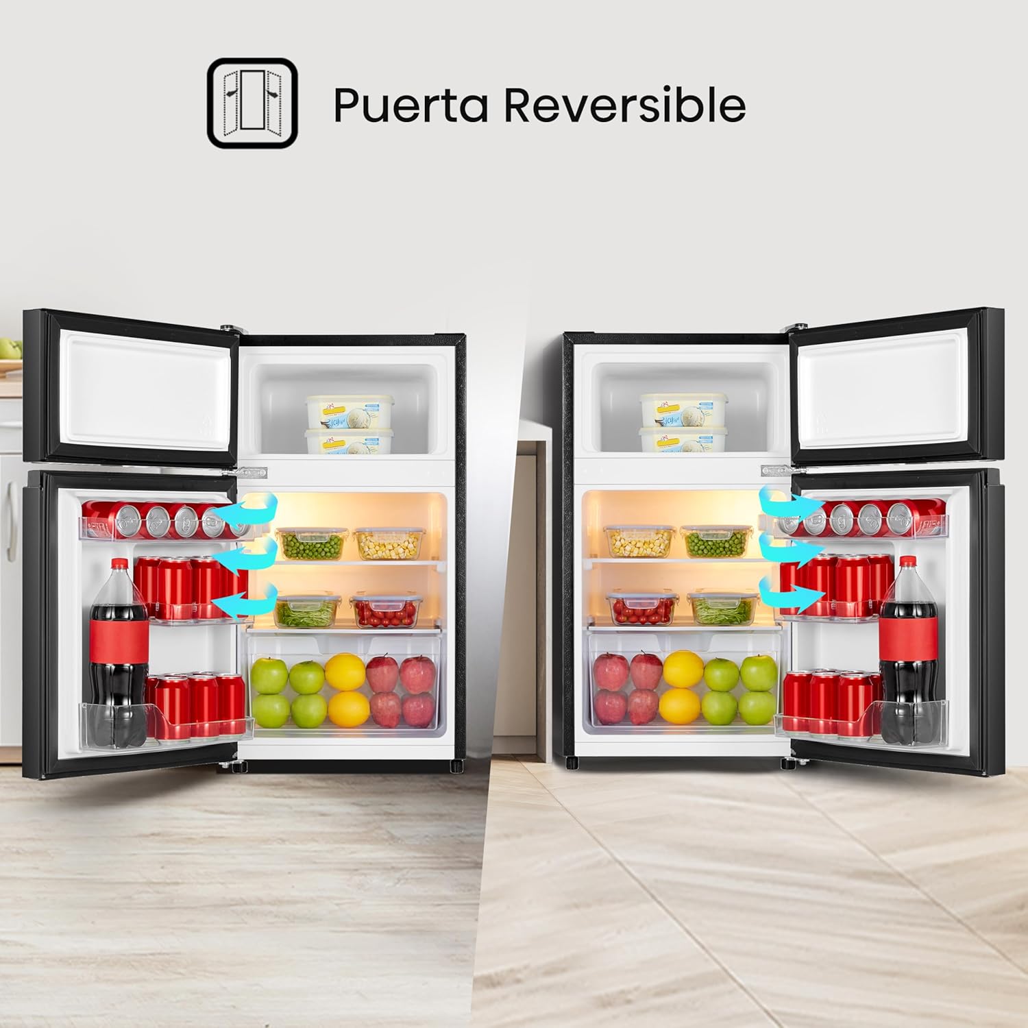 Hisense RT31D6ABX1 - Freestanding fridge freezer. 3.2L Separate Chiller, Adjustable Thermostat, LED Lighting, 47.5 × 54.7 × 85.7cm (W×D×H), Black