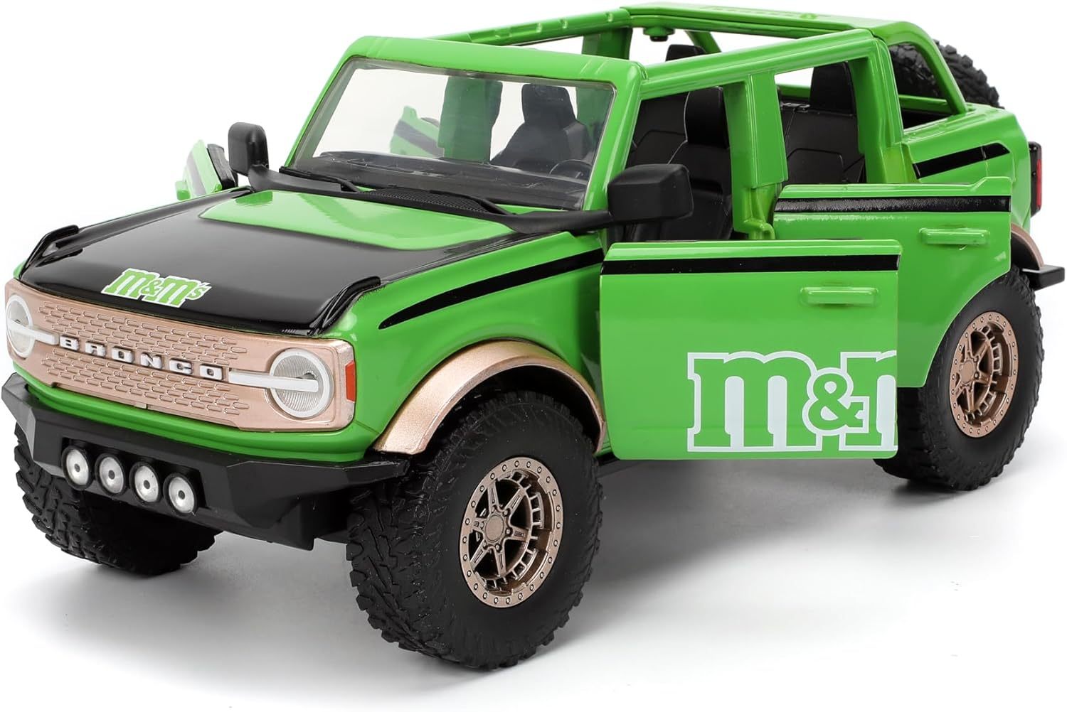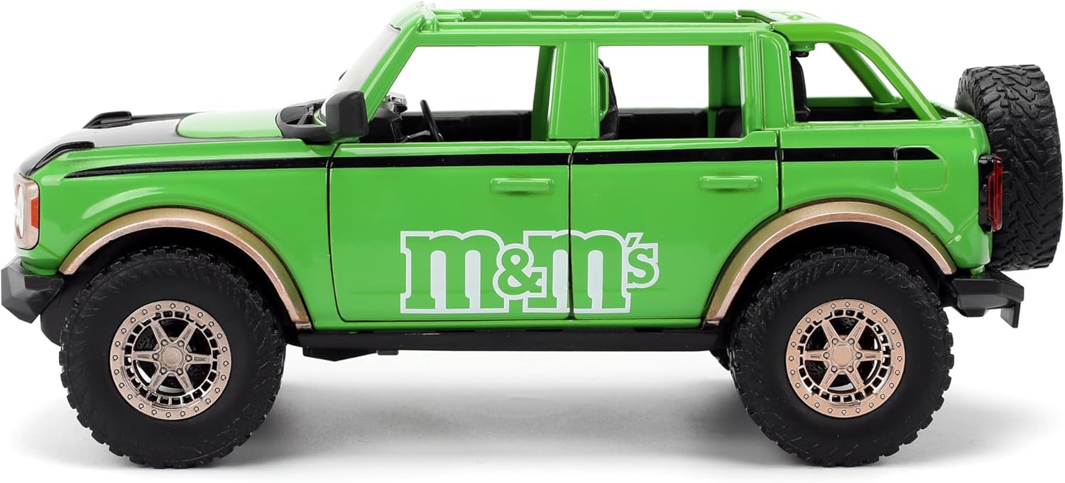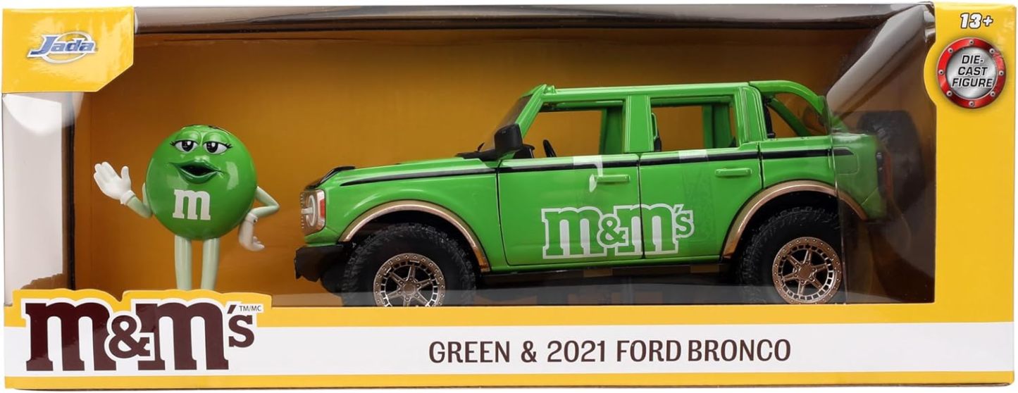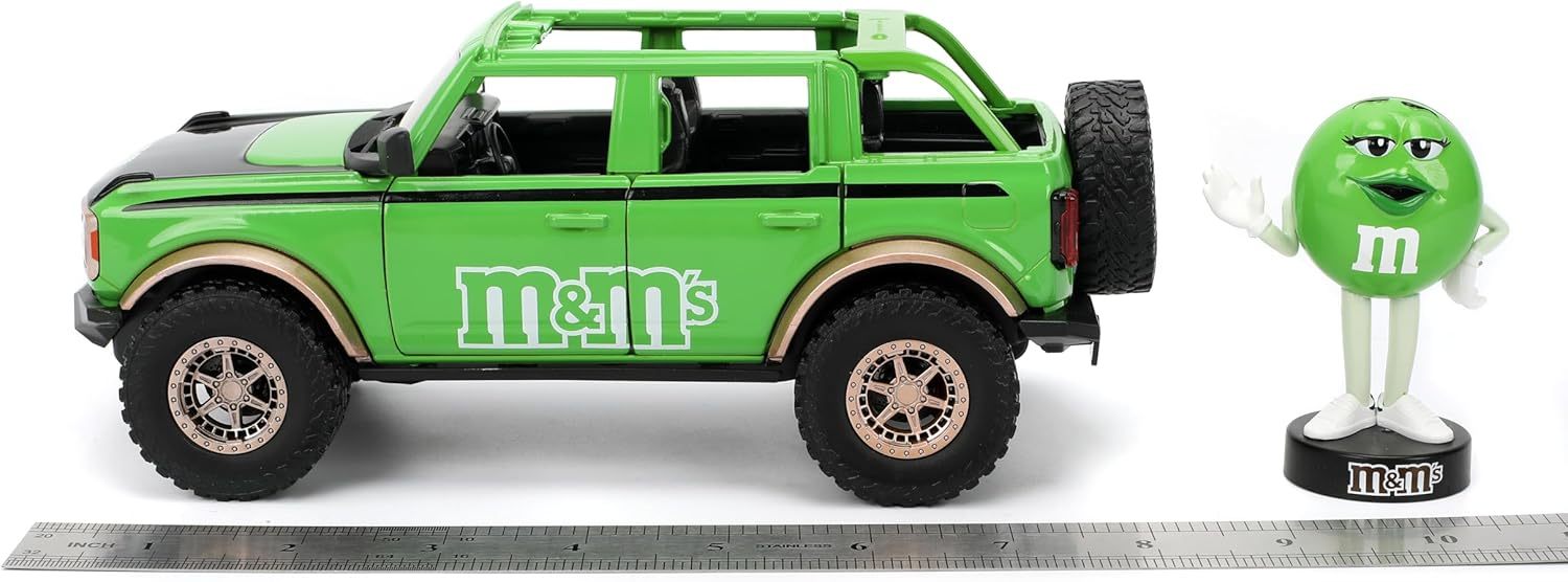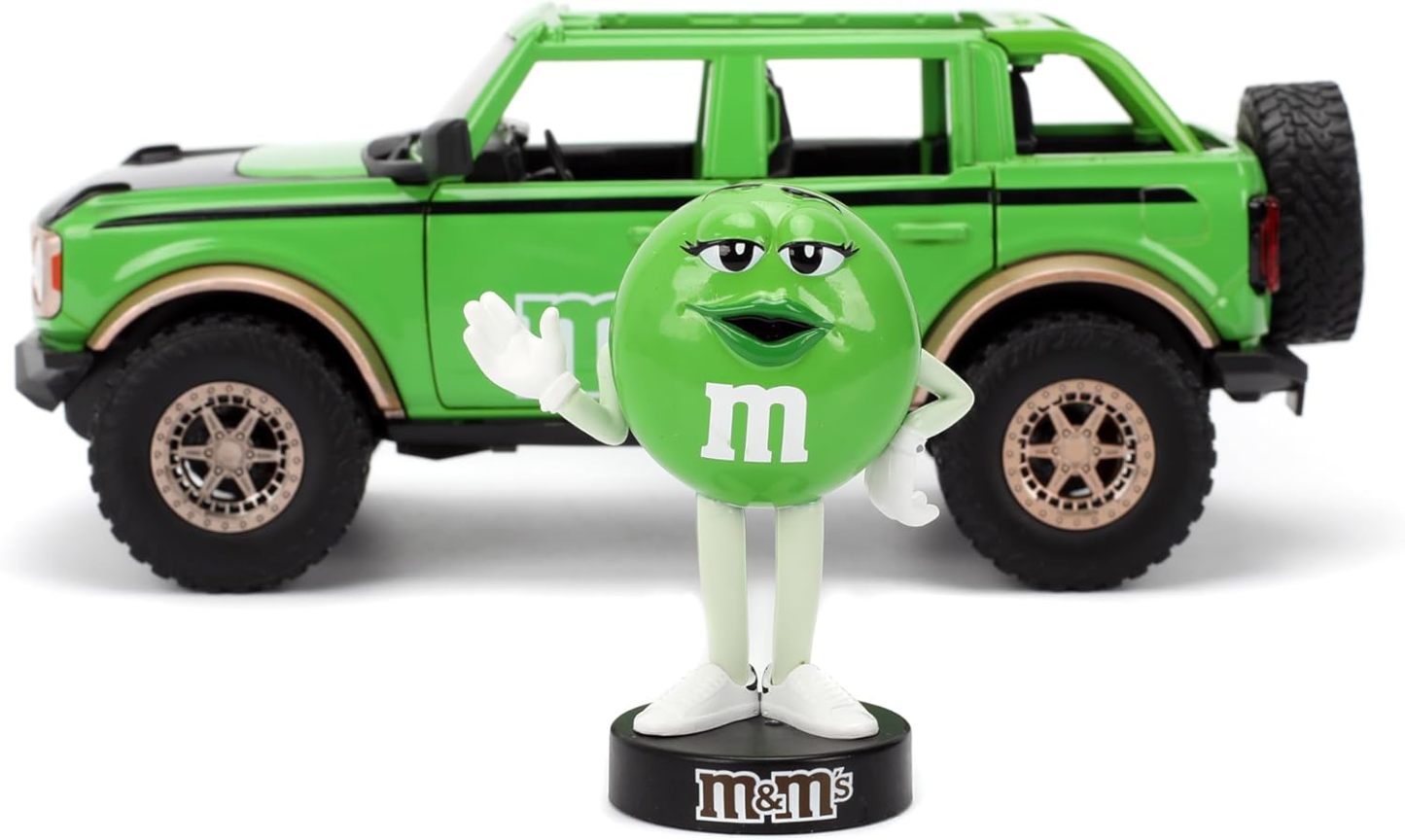 - Diseño único de M&M: combina el robusto Ford Bronco 2021 con la marca Green M&M'S y una figura de metal