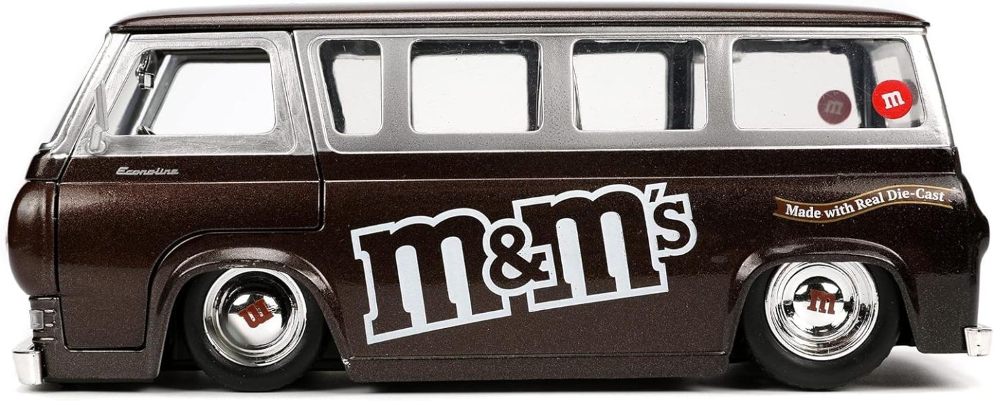 Jada Toys M&M's 1:24 1965 Ford Econoline Die-Cast Car with Red Figure, Toys for Kids and Adults
