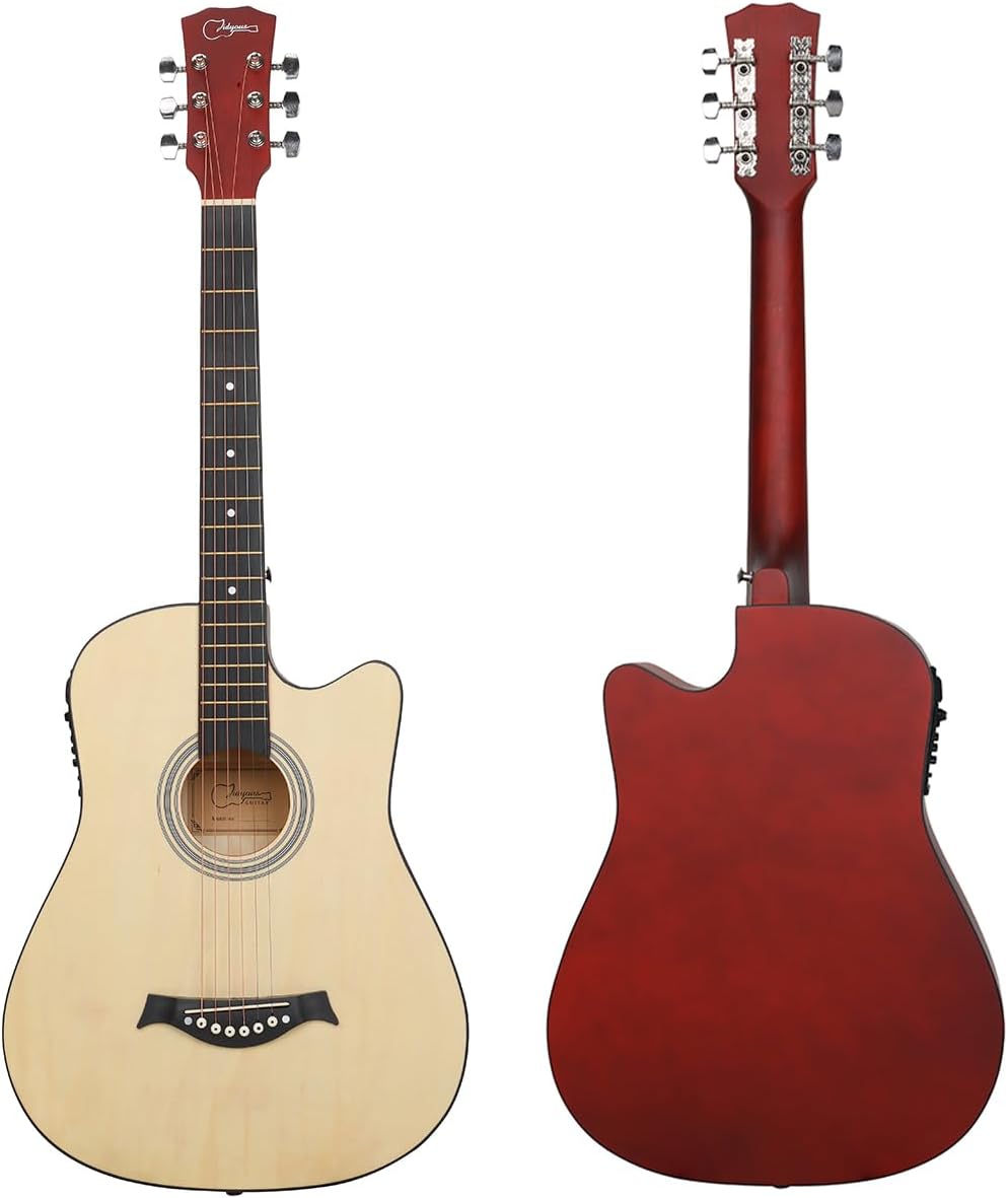 Jidyous electricacústica 38 inch Acústica Clasica guitarras Funda Y Accesorios, con correa, afinador, un paquete de cuerdas adicionales, capo, paño de limpieza, 3 púas, bolsa de concierto (Natural)