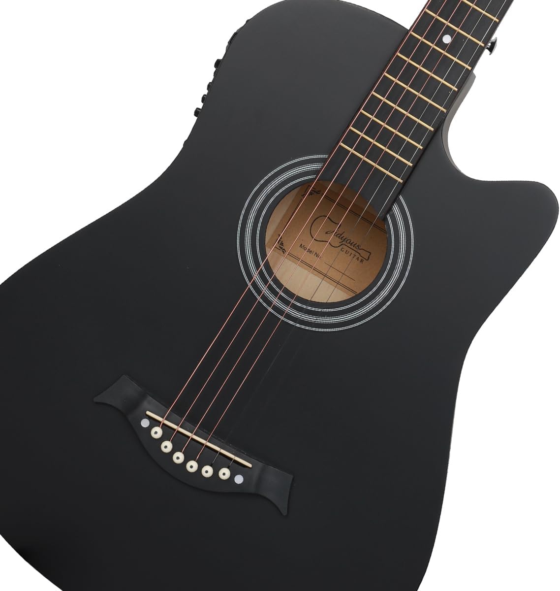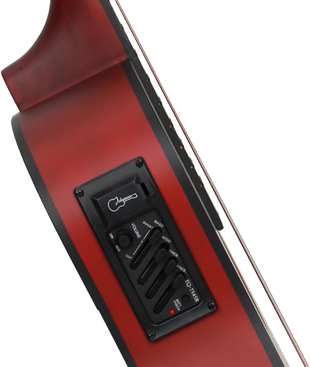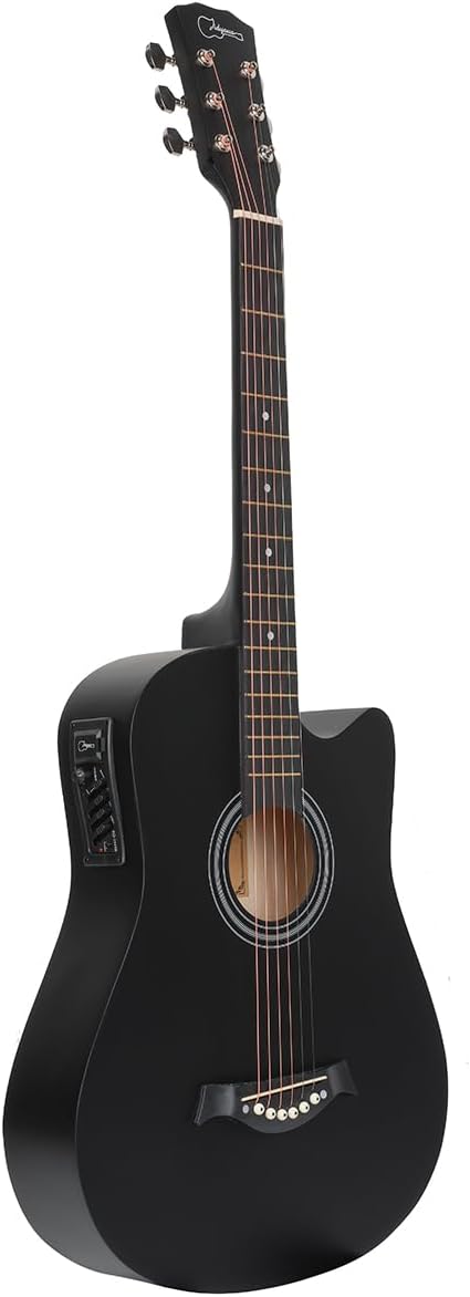 Accesorios Completos: 1 x 38In guitsrrsas electroacustica 1 x Sintonizador 1 x Funda para guitarra 1 x Correa 3 x Púas de dedo 1 x Paño de limpieza 1 x Juego de cuerdas de metal de repuesto 1 x Capo Especificación: Tamaño: 38 pulgadas con 6 cuerdas Material del cuerpo: Tilo Material del diapasón: Tilo Guitarra: Guitarra Material de las cuerdas: Cuerdas de bronce rojo, cuerdas metálicas Tamaño Guitarra: 965 mm de altura Peso Guitarra: 2,3 kg Personas adecuadas: niños, estudiantes, adultos