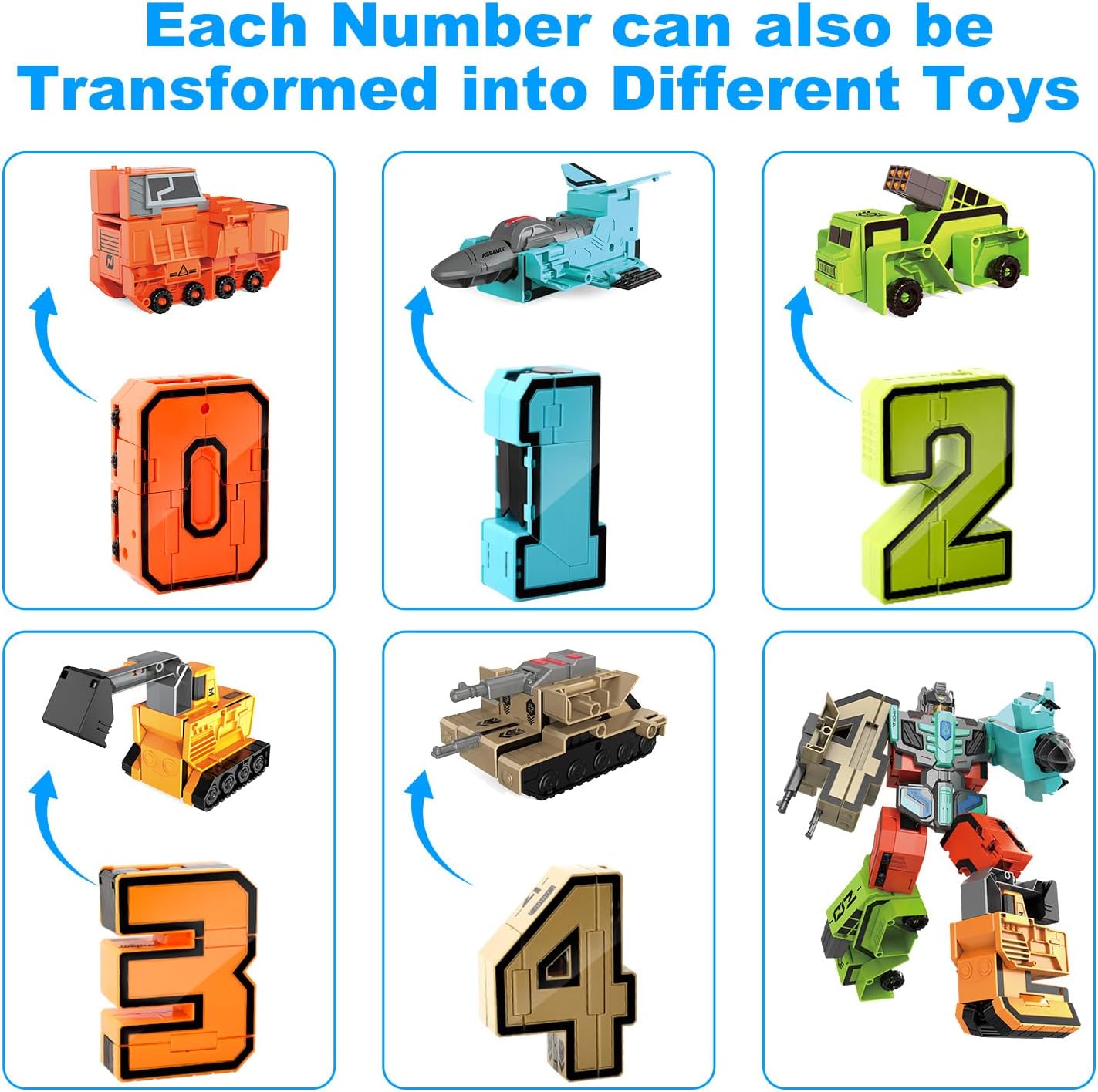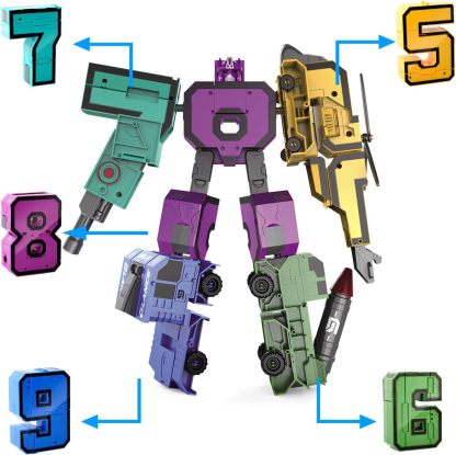 Diversas formas de jugar: el juguete único de bloques de números 5 en 1 de HOPANDOS da a los niños una experiencia de construcción sin precedentes. Contiene 10 bloques de construcción digitales deformables independientemente, que no solo se pueden utilizar como robots solos, sino también combinados en 2 superrobots ampliados. Todo el juego tiene 64 combinaciones diferentes, y cada conjunto puede traer una nueva experiencia, lo que permite a los niños descubrir nueva diversión y desatar creatividad ilimitada constantemente.