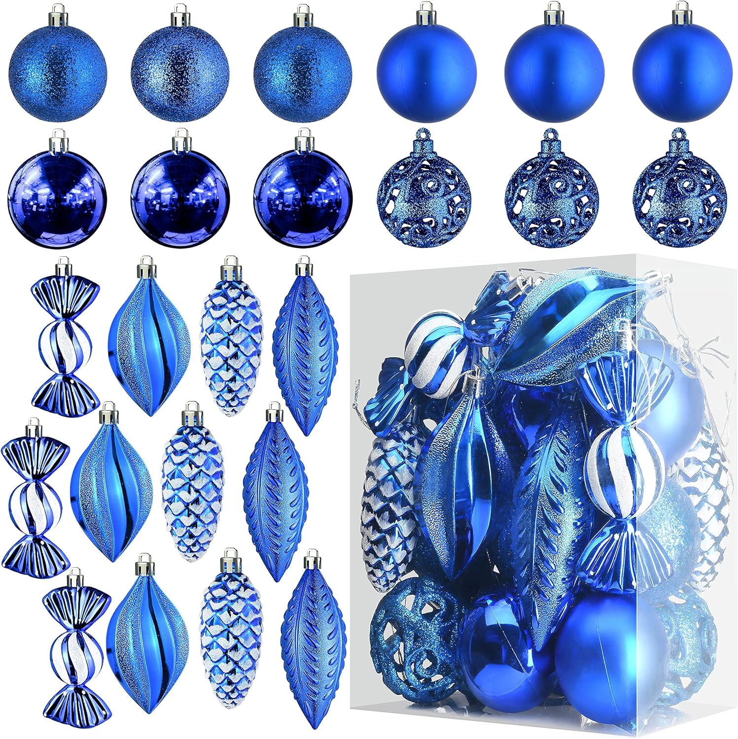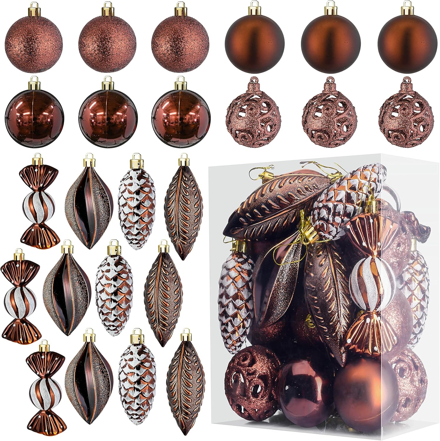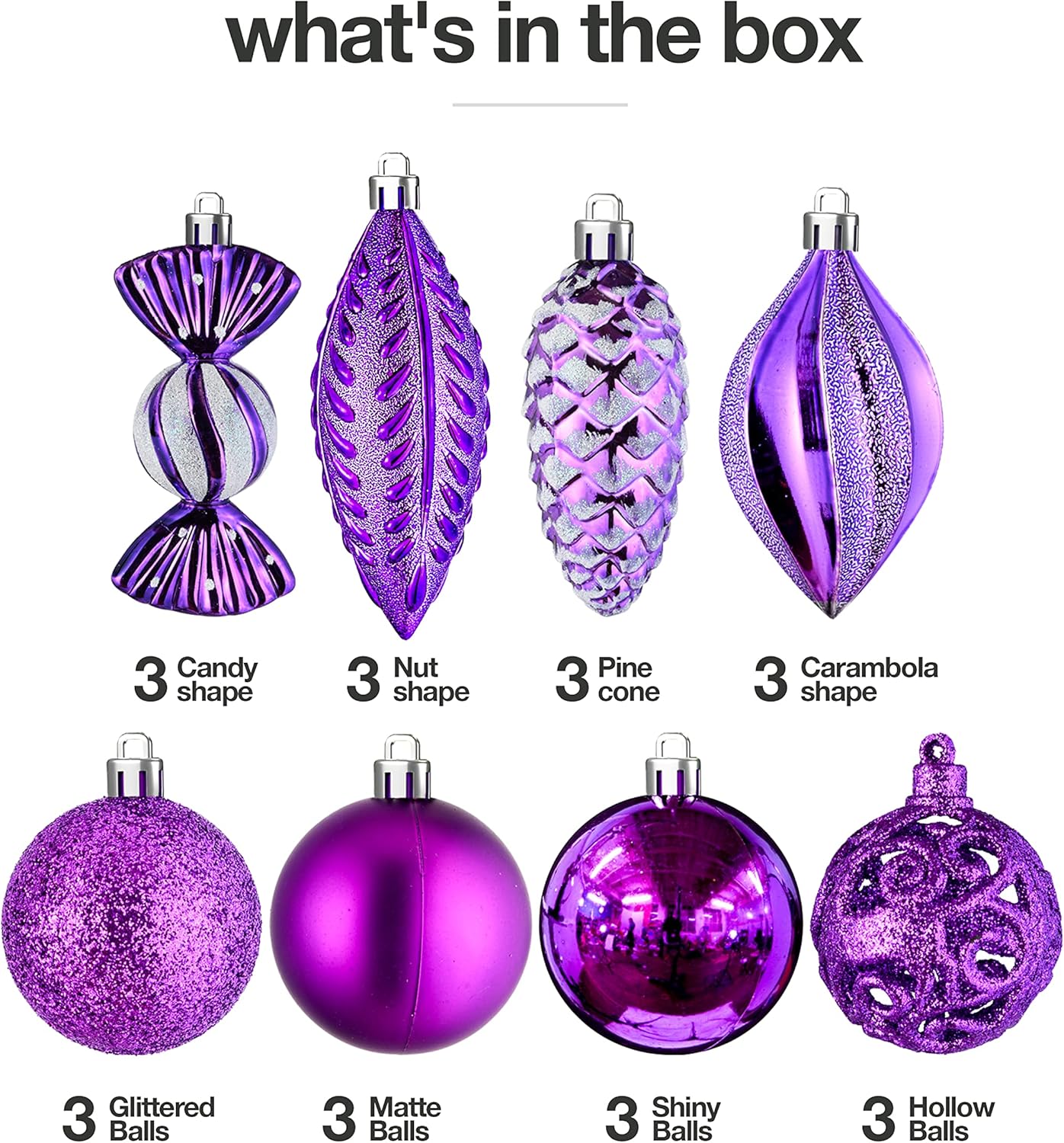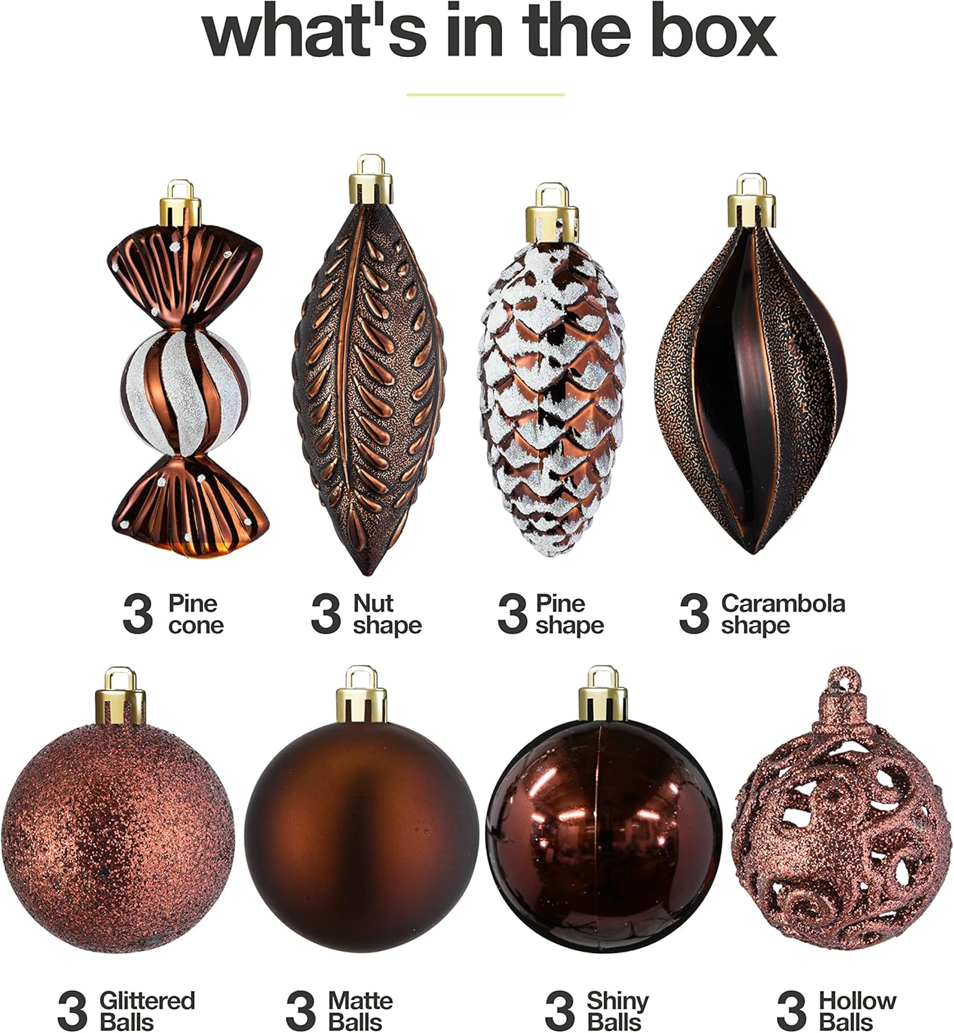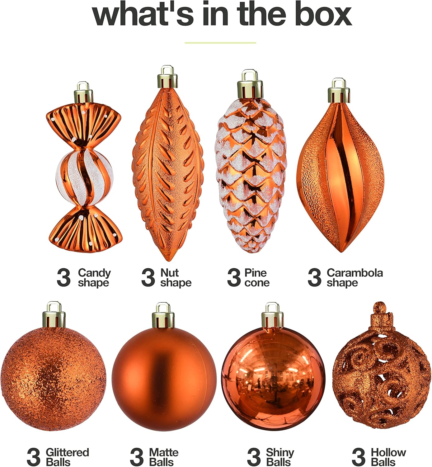 Juego completo de decoración de 24 piezas: incluye 8 bolas pequeñas (1.5 pulgadas), 8 medianas (2.3 pulgadas) y 8 grandes (3.1 pulgadas). Un juego de adornos para árbol de Navidad ideal para una cobertura de decoración equilibrada