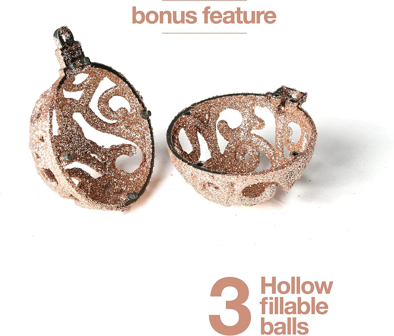 Variedad de acabados para mayor textura: este juego cuenta con acabados mate, brillantes y brillantes; los versátiles adornos navideños de champaña crean un aspecto rico y dimensional para tus decoraciones navideñas