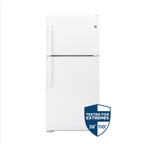 This GE Top Freezer Refrigerator is tested to perform in temperatures ranging between 38°F to 110°F.