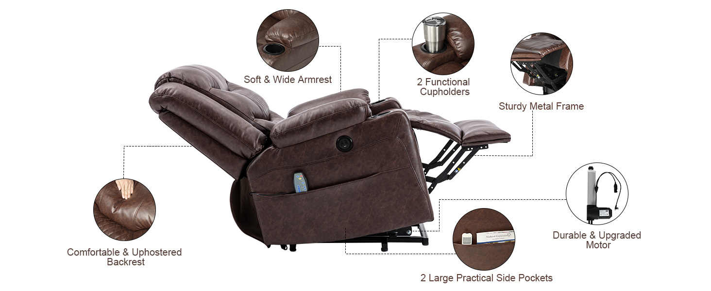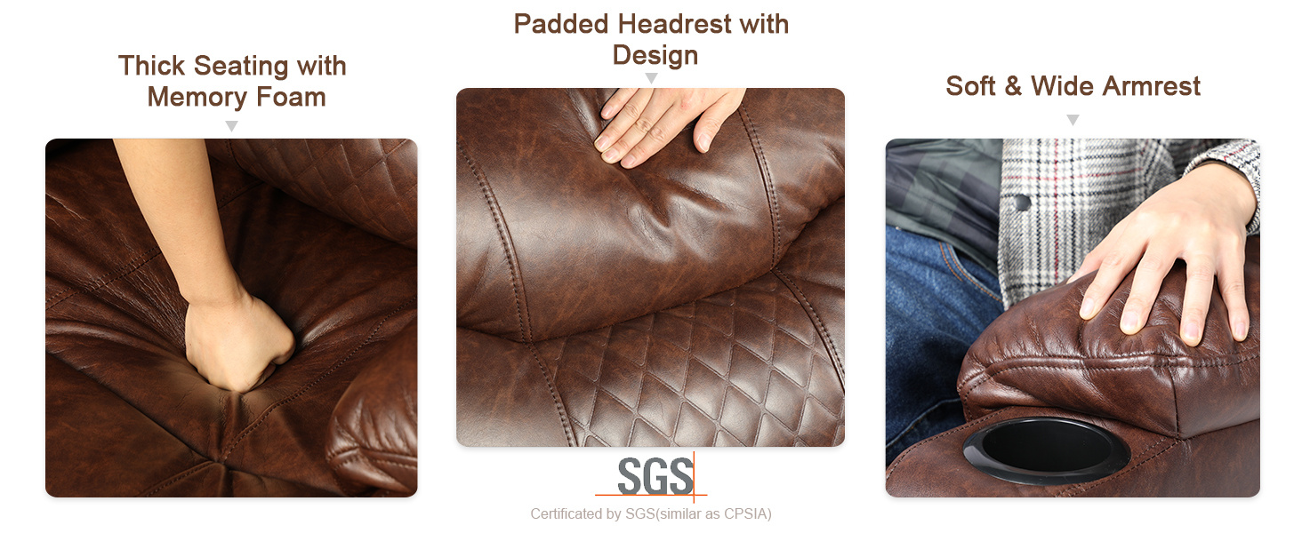 Tiene un cuero de imitación de alta calidad que es mucho más suave, resistente a la rotura, duradero para sentarse cómodamente a largo plazo en comparación con otras sillas reclinables de PVC, más fácil de limpiar también.
