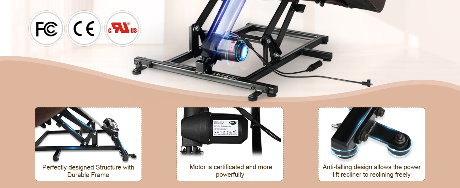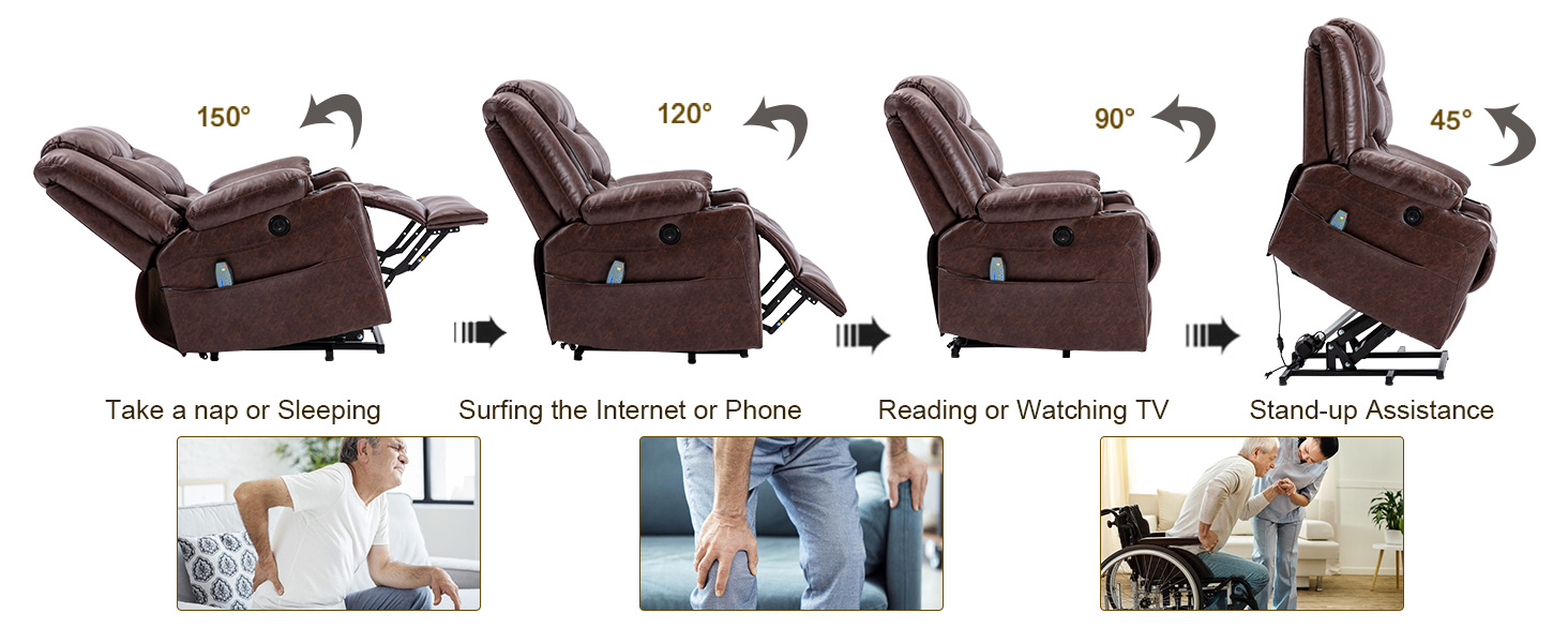 La longitud total de la silla reclinable es de 65" y la capacidad máxima de la silla elevable es de 330 lb. La forma del cuerpo de cada persona es diferente, por favor, compruebe la imagen de tamaño, y asegúrese de que el tamaño de la silla se adapte a usted.