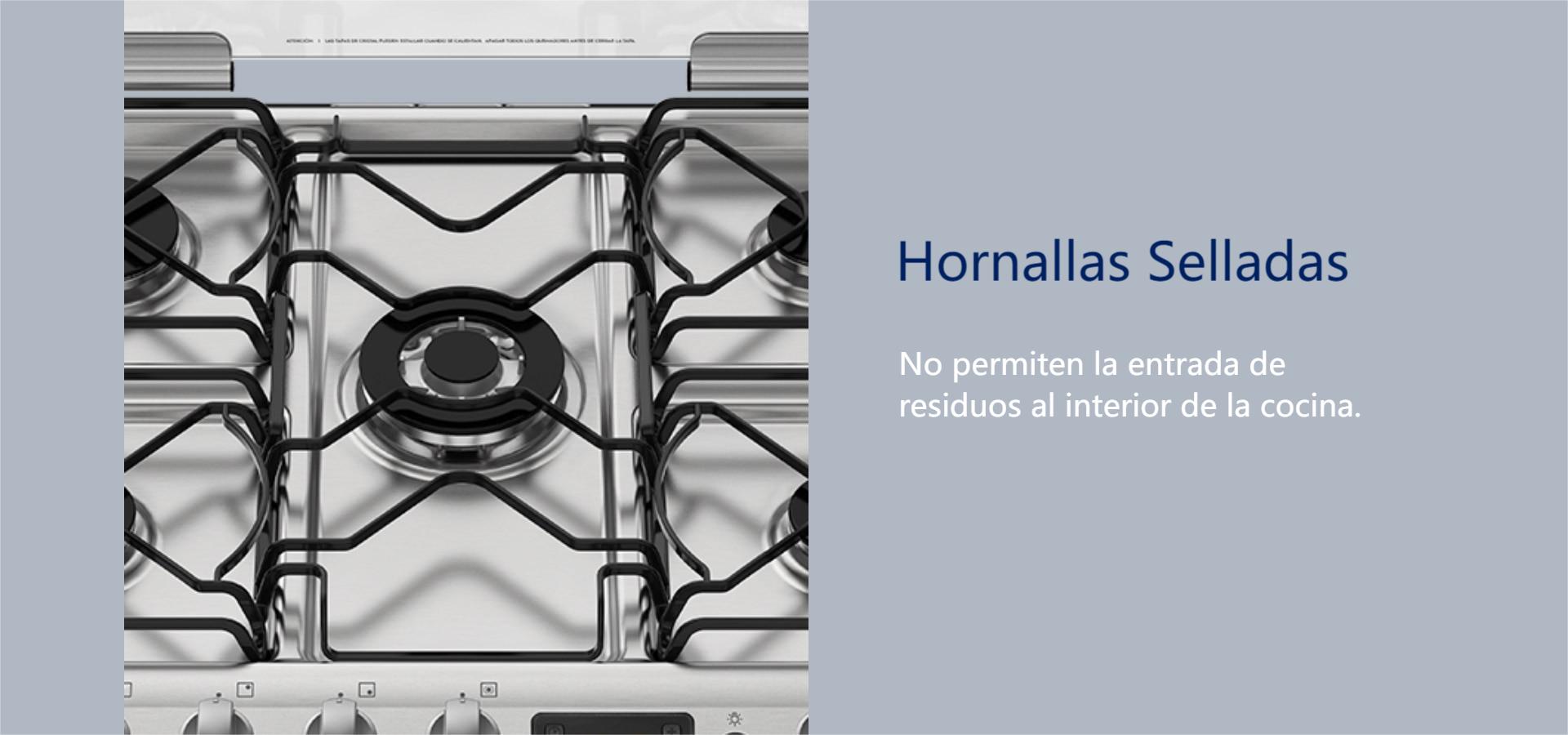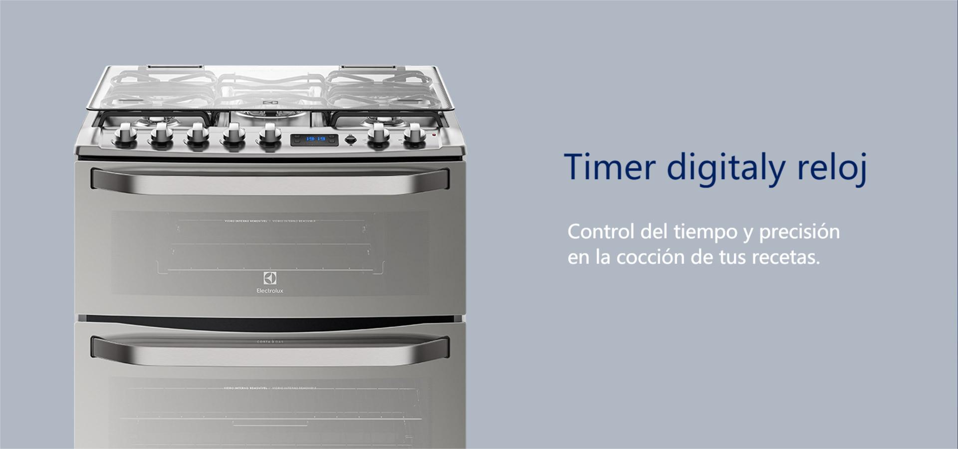 Moderna y segura, la Cocina Doble Horno Electrolux (76DXR) cuenta con dos hornos independientes a gas y un grill eléctrico para que puedas gratinar y dorar preparaciones y darle un toque especial a tus alimentos en el tiempo justo, gracias a su temporizador digital y reloj que facilita el control del tiempo de cocción. Sus dos hornos con temperatura independiente, permiten cocinar diferentes planos al mismo tiempo, sin mezclar aromas ni sabores. Cuenta también con cinco hornallas, una de ellas con función triple llama, que proporciona mayor rapidez en la cocción. Además, sus hornallas están selladas, de manera que no permiten la entrada de residuos al interior de la cocina. También el Recubrimiento FastClean evita la acumulación de grasa y facilita la limpieza del horno.