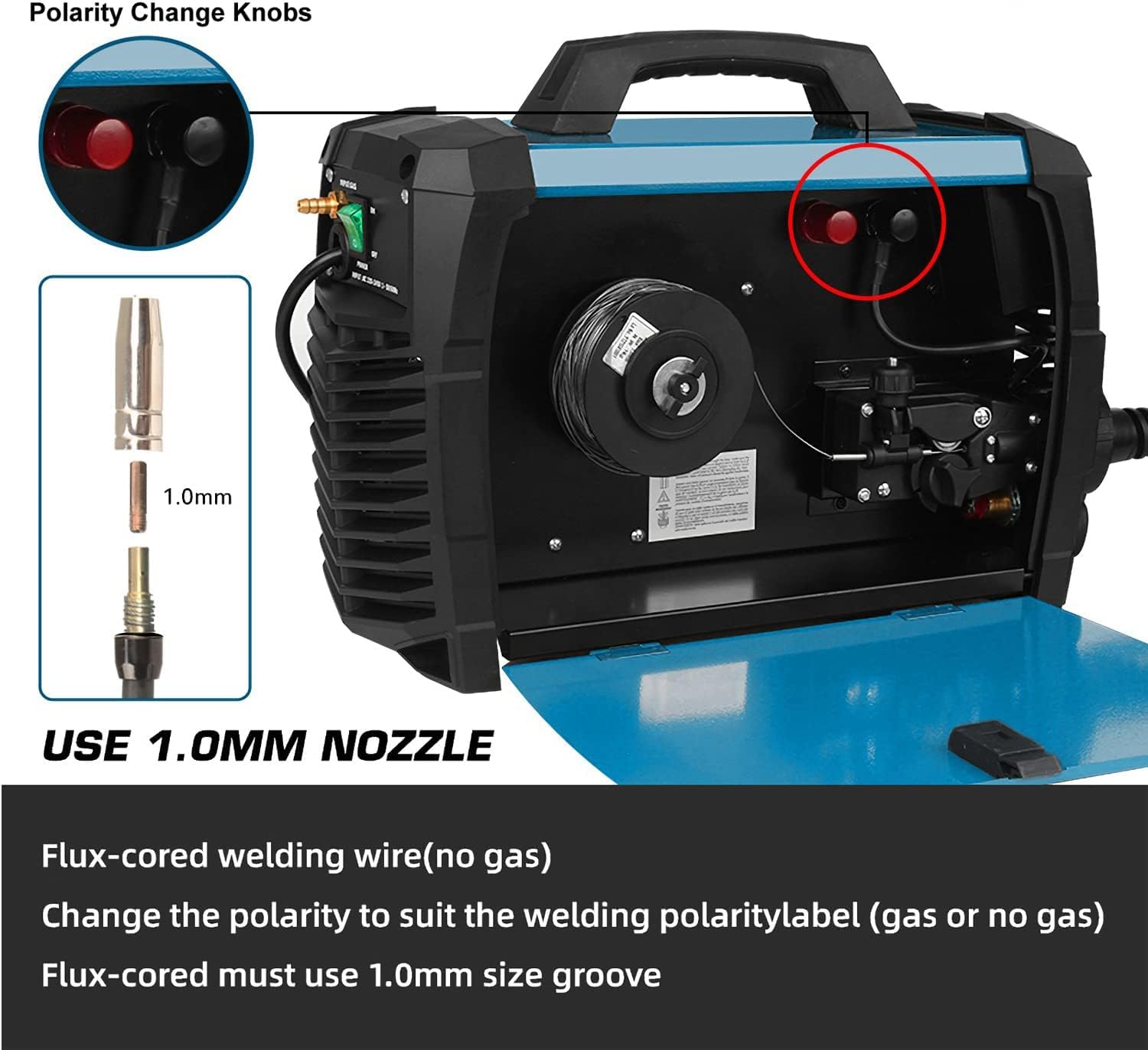 - 🔥【Soldadura de núcleo de flujo】En esta función, no necesitas conectar un dispositivo externo de protección de gas, pero necesitas utilizar alambre de soldadura con núcleo de flujo.