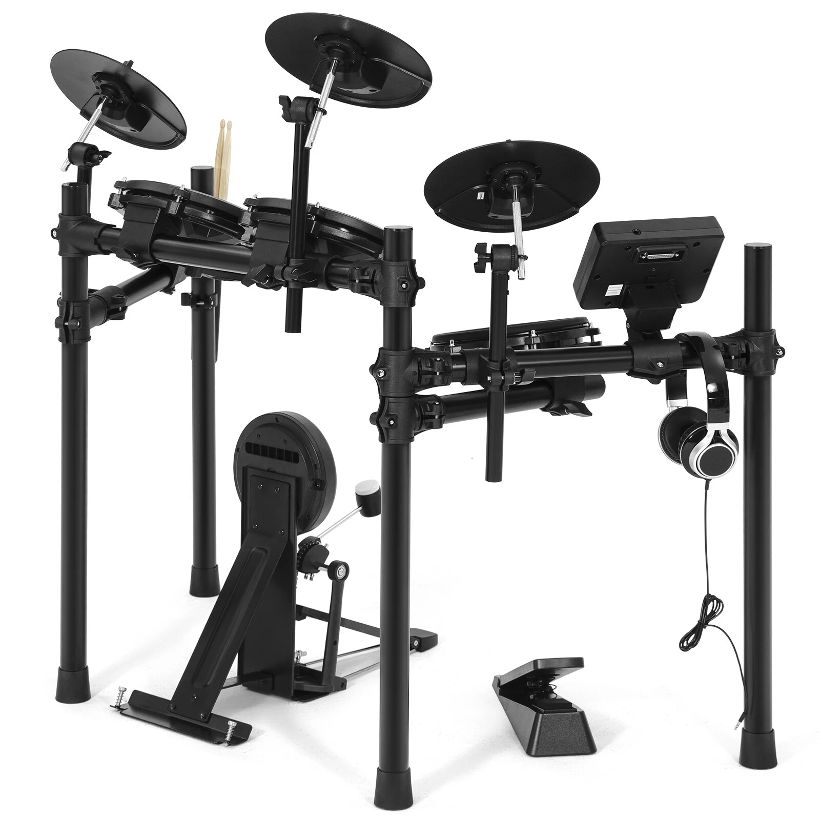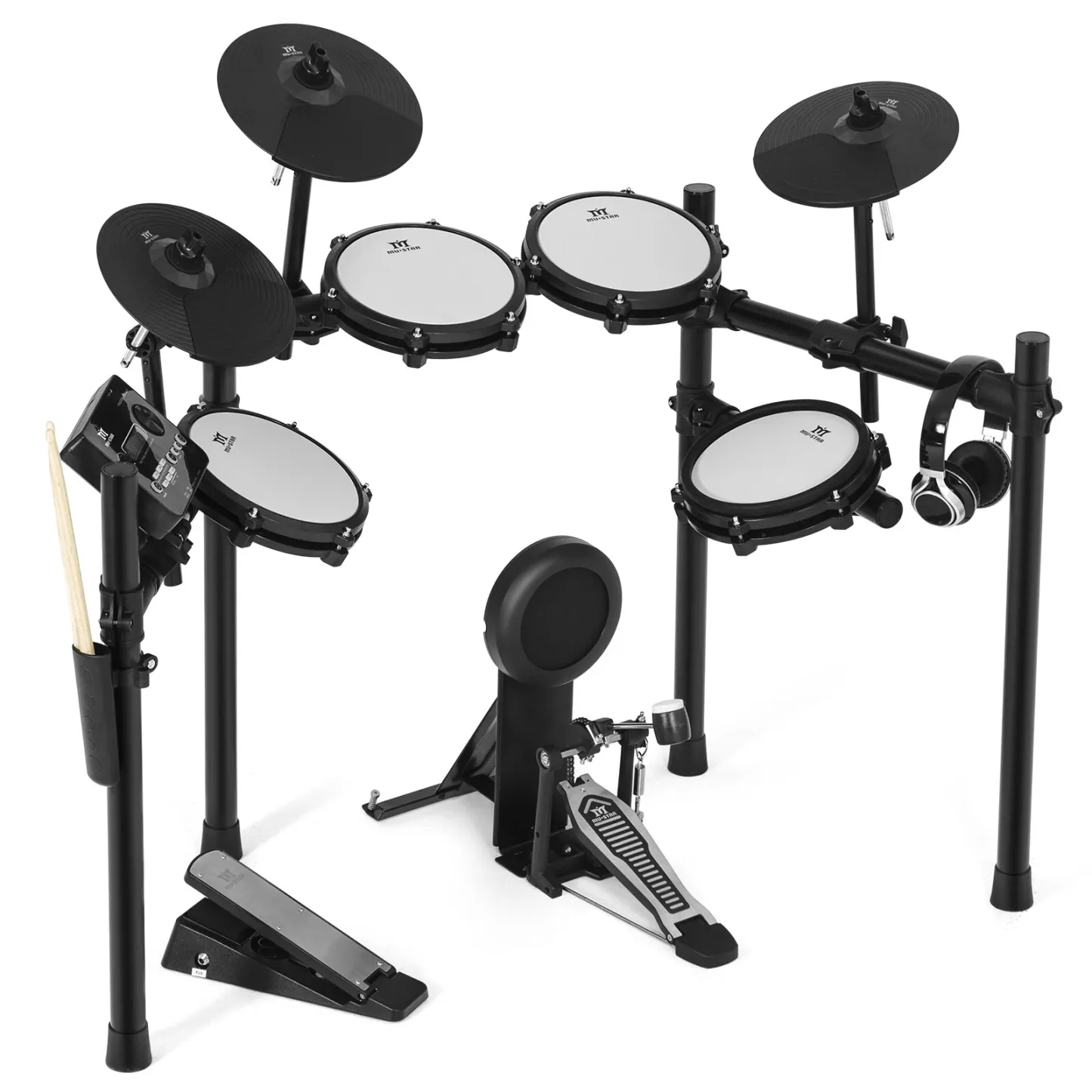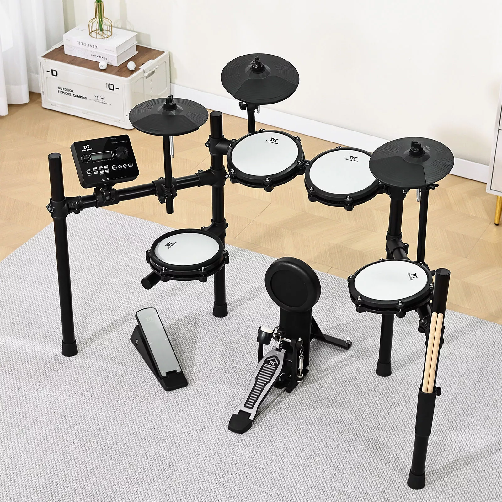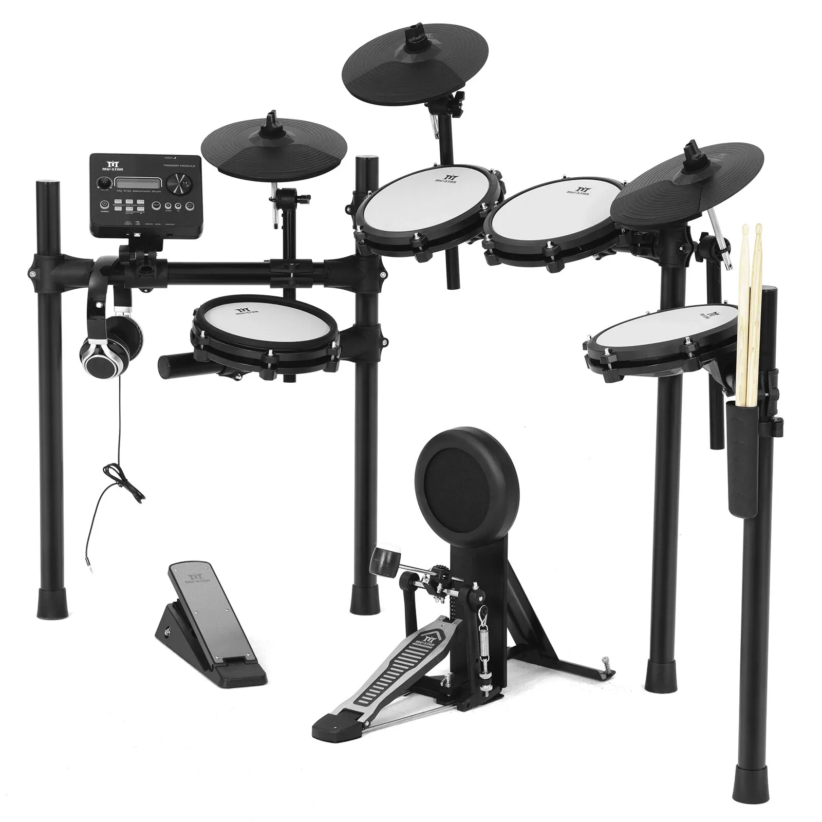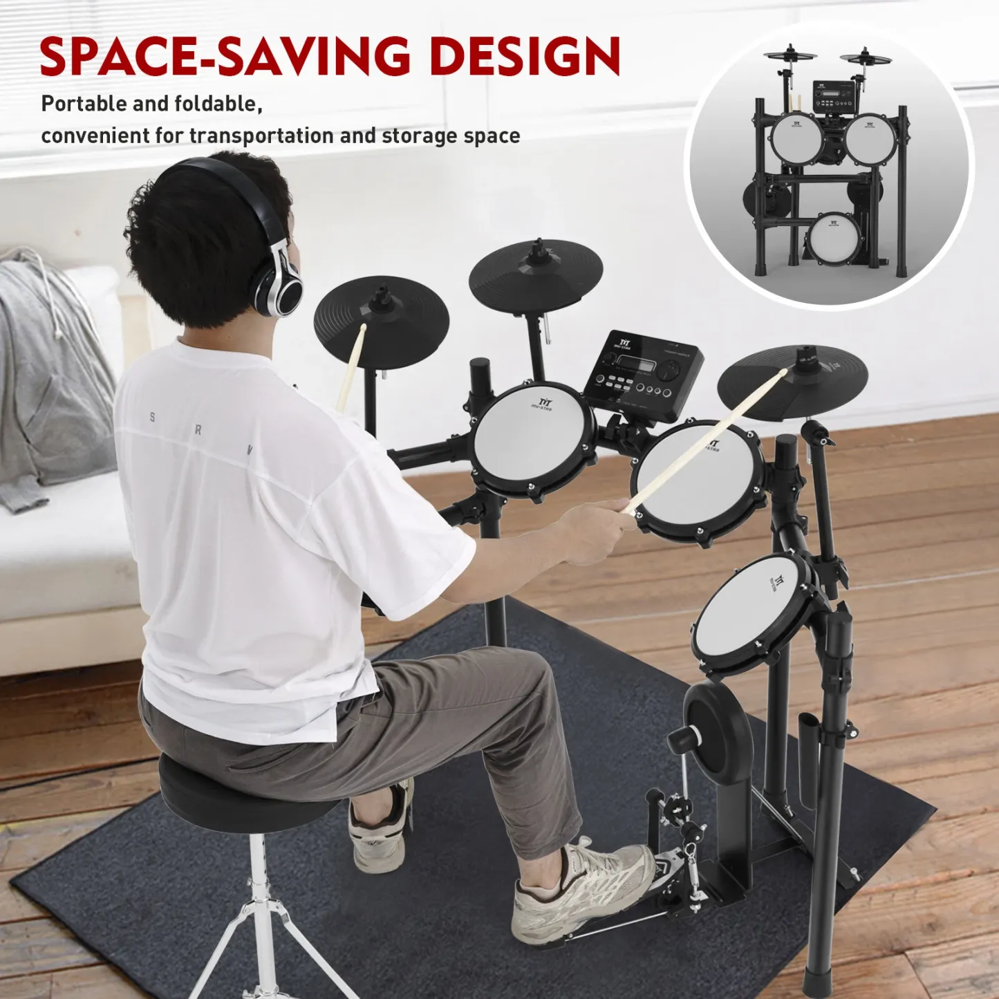 【Juego de batería de 8 piezas de alta calidad】: MUSTAR elecEl juego de batería tric viene con caja de doble zona de 8'' tom x 3, 8'' x 1, 10'' hi-hat x 1, 10'' ride x 1, 10'' crash x 1, pedal de bombo x 1, pedal hi-hat x 1, cable de audio x 1, Stompers x 1, baquetas x 2, cubo de baquetas, auriculares, etc. incluyendo todo lo que un baterista necesita para lograr su sueño musical.