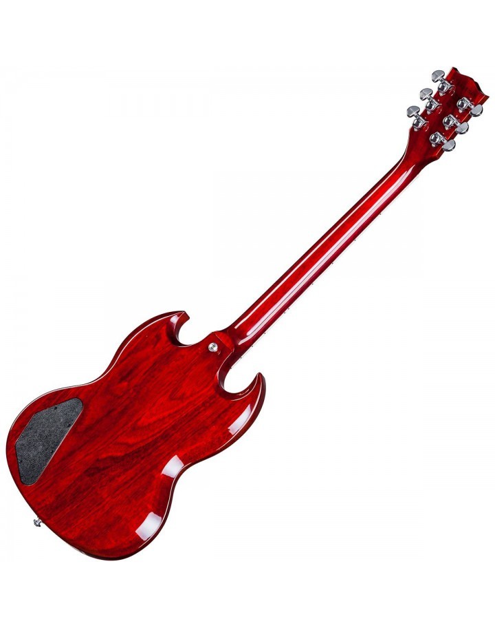 The 2017 SG Standard T model features a smaller teardrop-style black pickguard, similar to that found on the models released throughout the early 1960s' SGs. To enable the owner to keep the SG well looked after, Gibson include a hardshell brown case with the purchase, as well as a strap and polishing cloth to get you performance-ready right away.