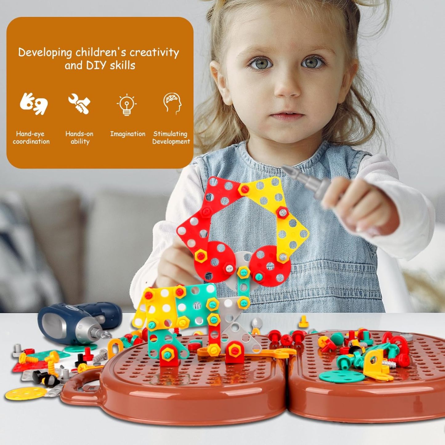 - 【Creativity and Imagination】: The 207-piece drill and screw set combines education and play, making it fun to knock, twist, clamp, pull and shake, allowing children to explore the world of geometry and architecture. Simulating real life and learning engineering principles, kids building toys can enhance logical thinking ability and creativity.