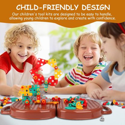 - 【Build STEM Skills】: This building toys for kids ages 4-8 is perfect for making your kids take a leap in STEM skills! Creative thinking, hands-on ability, mechanical cognition, logic, concentration, shape cognition, spatial imagination and interpersonal communication. Creative mosaic electric drill set promotes early brain development in kids.